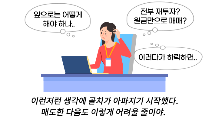 나의 투자는 아직 끝나지 않았는데 앞으로 어떻게 해야 하는 건지 다시 고민에 빠졌다.