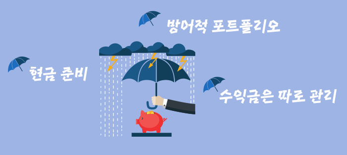 항상 지금보다 안 좋은 주식시장을 대비해서 하락장에도 크게 흔들리지 않을 수 있는 방어적 포트폴리오와 현금을 항상 챙기는 편이고, 수익금도 재투자하는 편이라기보다는 따로 관리하지.