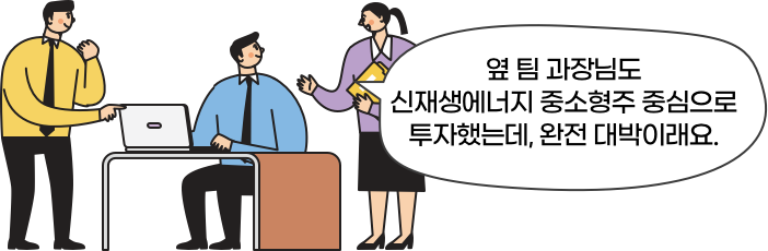 옆 팀 과장님도 나와 비슷하게 신재생에너지 관련주에 관심을 가지고 중소형주 중심으로 매수했는데, 벌써 수익률이 나의 2배 이상이라고 한다. 같은 투자 아이디어로 접근했는데 수익률에서 이렇게 큰 차이가 난다니… 뭐가 잘못된 걸까?