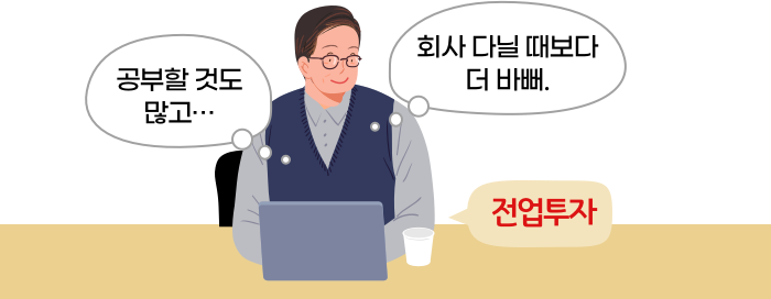 “솔직히 회사 다니는 거보다 여유로울 것 같아서 시작했는데 이건 다닐 때보다 더 바쁘다고 해야 할까. 회사 일은 그래도 정해진 출퇴근 시간이 있고 매월 정해진 월급이 나오잖아. 그런데 전업투자는 거의 내 사업이니까, 내가 연구하고 결정한 대로 성과가 나오게 되고, 그게 주요한 수익이다 보니 예전보다 더 공부하고 자료도 많이 찾게 되더라.”