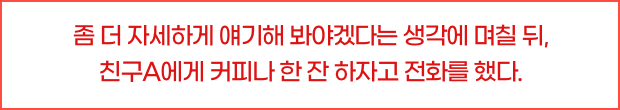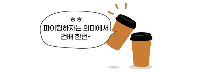 “그렇구나. 꼭 기억해야겠네. 그래도 좋은 스승님이 생겨서 든든하네. 우리 같이 파이팅 하자는 의미에서 커피지만 건배 한번 할까?”