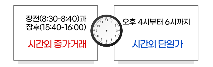 “정규시간 거래는 9시에 시작해서 3시 30분에 끝나지만, 장전(8:30-8:40)과 장후(15:40-16:00) 하루에 2번 정규시간에 거래된 가격으로 거래되는 시간외종가거래가 남아있거든.