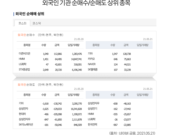장 마감 후엔 외국인과 기관이 관심 많았던 섹터와 종목들을 꾸준히 업데이트해 나갑니다. 필요하다면 엑셀로 다운받아 당일 종목별로 확인할 수 있습니다.