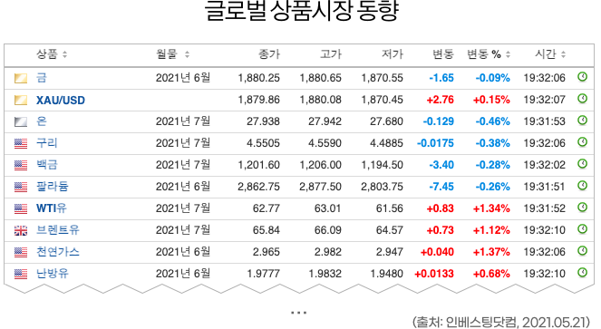 기타 원자재 가격 동향이 국내 주식시장에 주는 영향도 확인합니다.