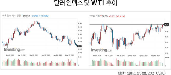 또한 유가의 상승은 긍정적인 경기의 반영으로도 해석하지만, 너무 빠른 유가의 상승은 물가에 부담을 주어 글로벌 중앙은행의 긴축 가능성도 높아진다는 점을 유의해야 합니다.