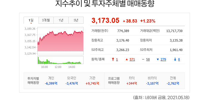 장 시작 이후에는 시장의 수급동향에 따라 지수가 영향을 많이 받습니다.