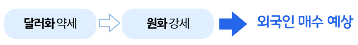 달러화 약세 시 원화 강세로 연결되며 국내시장의 외국인 매수 가능성을 예상할 수 있습니다.