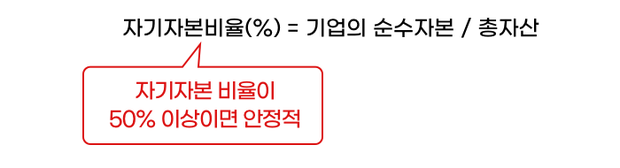 첫째, 자기자본비율이란 총자산에서 기업의 순수자본이 차지하는 비율로 회사가 안정적인 자본으로 운영되고 있는지 확인할 수 있는 비율입니다.