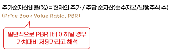 다음으론 주가순자산비율(Price Book Value Ratio, PBR)입니다.