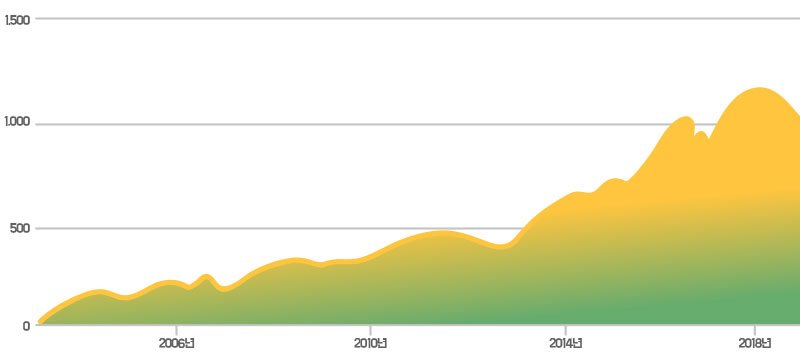 위 그래프는 2000년대부터 2018년까지의 주가입니다. 2000년대 초반에 있었던 IT 광풍으로 엄청난 투기가 집중되었습니다.
