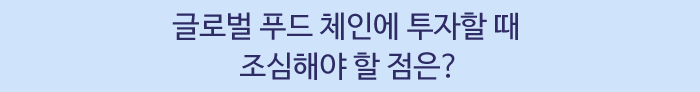 글로벌 푸드 체인 기업은 수십 년간 수많은 신규 도전자들을 물리치고 현재의 자리에 오른 만큼 강력한 브랜드를 가지고 있지만, 단기적으로는 유의해야 할 리스크가 존재한다. 대표적으로 위생문제가 있다. 요식업에 속한 만큼 위생문제가 터질 경우 회복하기 어려울 정도의 리스크가 될 수 있으므로 각별한 주의를 해야 한다.