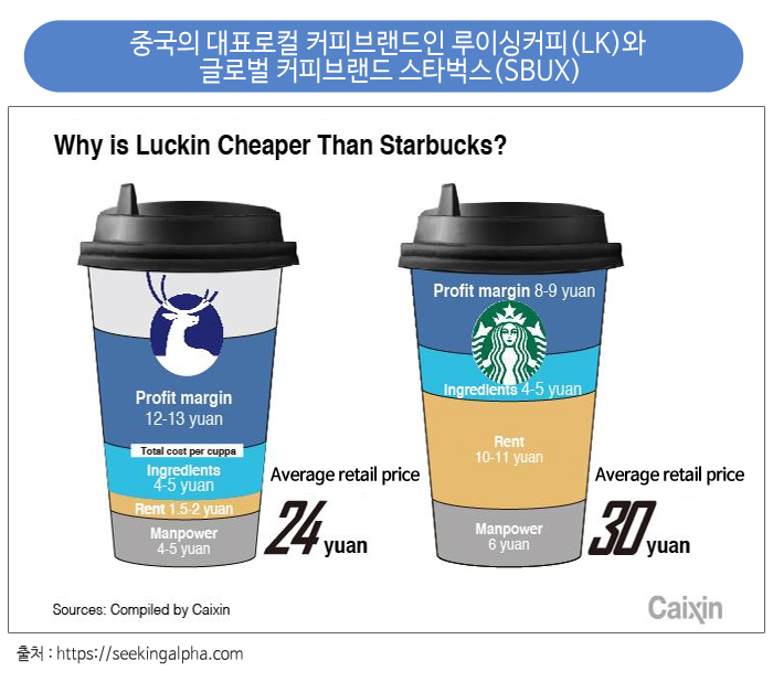 위 자료를 보면 중국 로컬 커피 브랜드인 루이싱커피는 스타벅스보다 낮은 가격으로 공격적 확장 정책을 사용하며 스타벅스의 확장을 저지하고 있는 상황이며, 투자자들은 이러한 신규업체가 글로벌 푸드 체인의 영업이익률이나 시장점유율을 빼앗아 가는지 꾸준히 체크해야 할 필요가 있다.