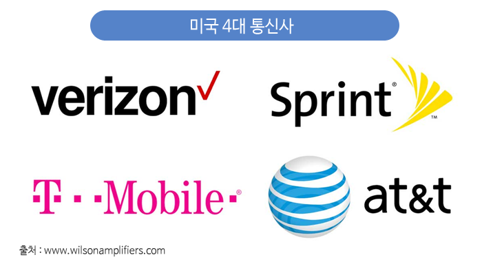 위 기업들의 심벌처럼 2018년 매출 기준으로 미국 무선 사업자 시장점유율은 버라이즌(VZ) 33.18%, AT&T(T) 28.92%, 티모바일(TMUS) 16.84%, 스프린트(S) 11.48%로 4개 업체가 과점을 형성하고 있다.
