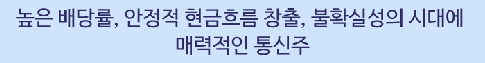 특히 최근과 같이 불확실성이 지속되며, 저금리 기조가 지속될 경우 상대적 안전자산인 통신주로의 자금 유입은 계속될 것으로 보인다.