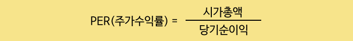 PER, 주가수익률은 현재 기업의 전체 가치를 나타내는 시가총액을 해당 기업이 일정 기간 동안 벌어들인 당기순이익으로 나눈 수치이다.