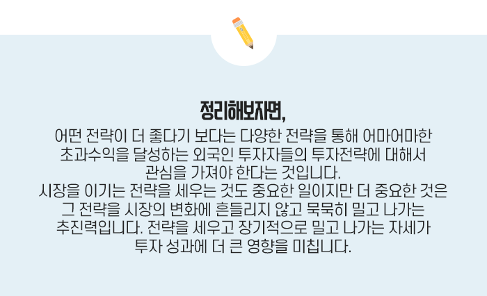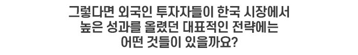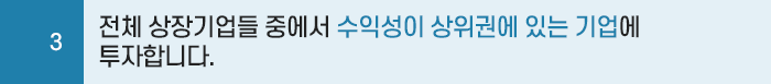 이 세 가지의 조건은 쉽게 말하자면, 주식투자자들의 관심을 받지 못하고 있지만, 소문 없이 돈 잘 버는 기업들에 장기 투자한다는 전략이라고 할 수 있습니다.