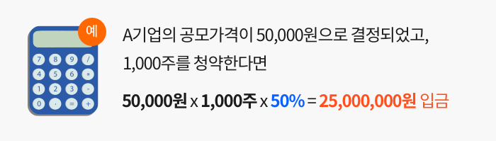 이때 청약증거금 50%를 계좌에 입금하면 됩니다. (나머지 50%는 배정결과가 나오는 날 넣으면 됩니다.)