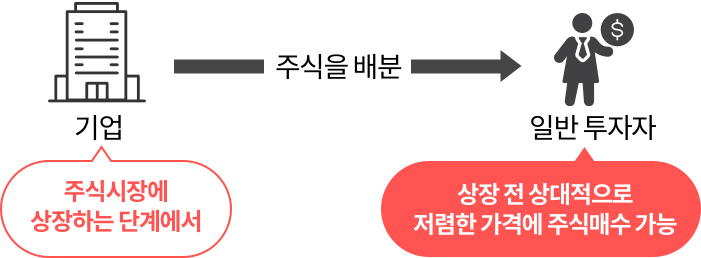 기업이 주식시장에 상장하는 단계에서 일반 투자자들에게 주식을 배분하는 것으로, 공모주 투자는 성장성이 큰 기업의 주식을 상장 전에 상대적으로 저렴한 가격에 매수하였다가 상장 후 매도를 통해 큰 수익을 볼 수 있어 투자자들에게 인기가 높습니다.