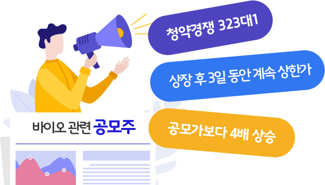 청약경쟁 323대1, 상장되고 3일 동안 계속 상한가를 쳐 공모가보다 4배 넘게 오른 바이오 관련 공모주. 주식에 관심 없던 사람들도 한 번씩은 공모주에 관심을 가지게 된 계기를 마련해 주었습니다.