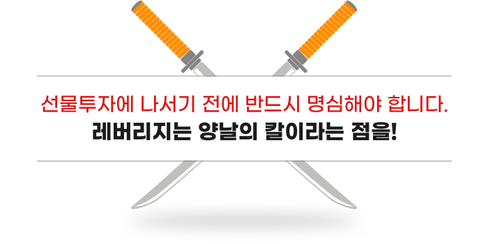 선물시장에 참여한다면 자신의 의도와는 상관없이 레버리지를 사용하게 된다는 점을 꼭 기억해야 합니다.