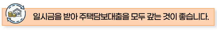 대출 상환금액을 확인 후 일시금 인출한도 내에서 상환이 가능하다면 '종신혼합방식'을 택해 일시금을 받아 주택담보대출을 갚을 수 있습니다.