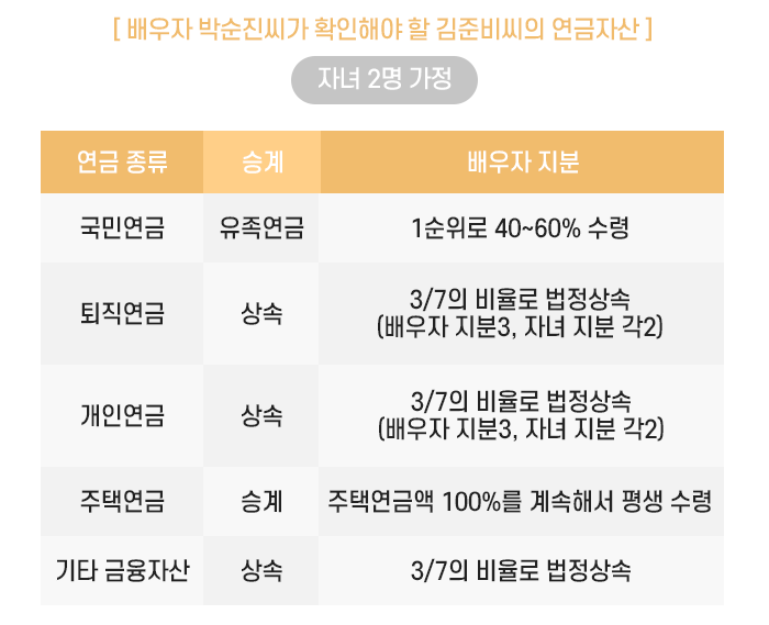 그렇기에 연금자산은 평소에 각자의 명의로 따로따로 준비해 놓는 것을 추천한다.