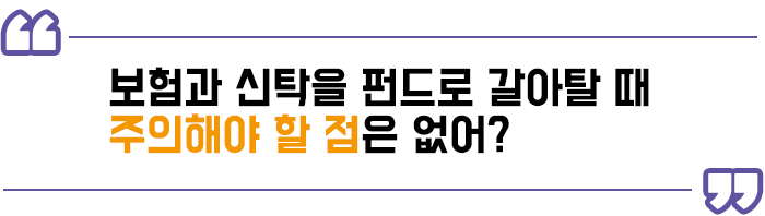 펀드는 투자성과에 따라 원금을 손해 볼 수 있지만, 보험과 신탁은 그렇지 않습니다.