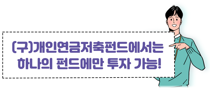 다만 (구)개인연금저축펀드에서는 하나의 펀드에만 투자할 수 있습니다. 따라서 집중 투자에 따른 리스크를 줄이려면 다양한 지역과 자산에 분산투자하는 펀드를 골라야 합니다.
