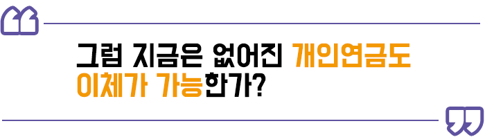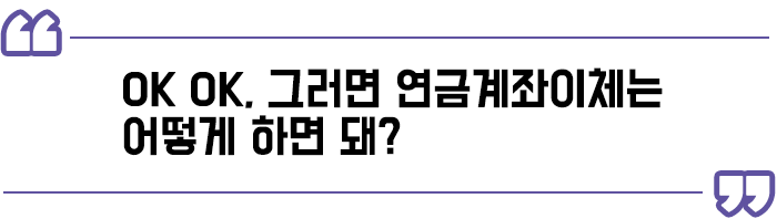 이것이 바로 연금이체라고 줄여 부르기도 하는 ‘연금계좌이체’ 입니다.