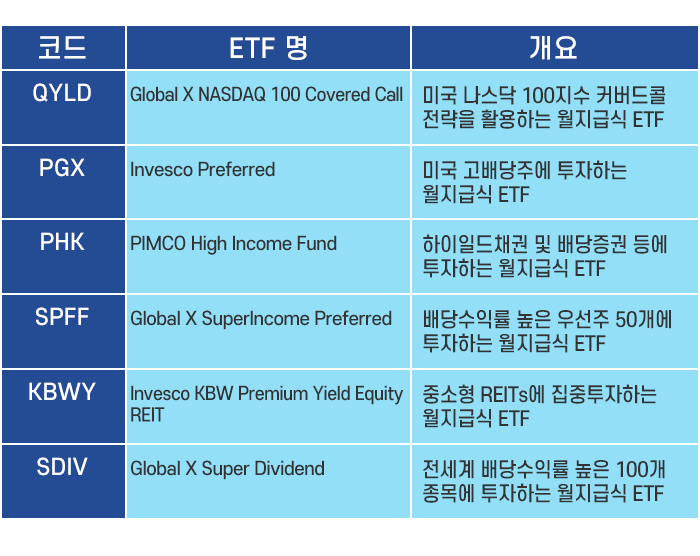 미국에서는 채권형 ETF, 인컴형 ETF 외에 주식형 ETF도 월지급식으로 발달하여 많이 운용되고 있습니다.