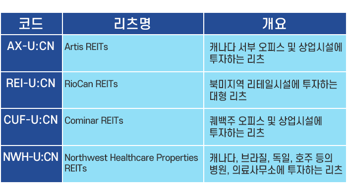 우리나라에서도 증권회사를 통해 캐나다 리츠를 얼마든지 매입할 수 있습니다.