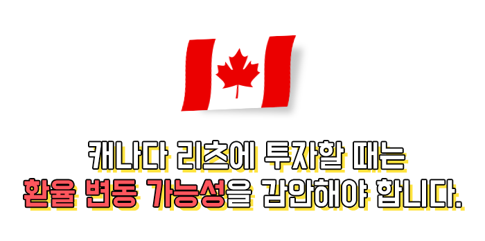 그러나 이때 원화 대비 캐나다 달러 환율 변동성을 감안해야 합니다.