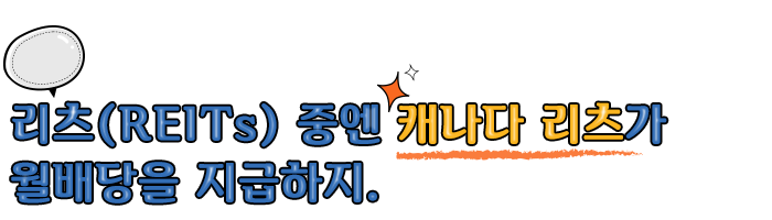 그러나 캐나다 시장에 상장되어 있는 40여 개의 캐나다 리츠는 배당금을 매월 지급합니다.