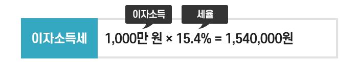 1년 동안의 이자소득은 1억 원의 10%인 1천만 원이고 이자소득의 원천징수 세율은 15.4%(지방소득세 포함)이므로 이자소득세는 154만 원입니다.