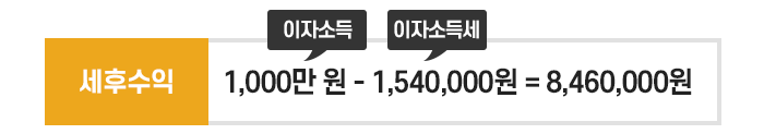 이자소득은 이자소득세를 원천징수 후 지급하기 때문에 세후수익은 846만 원입니다.