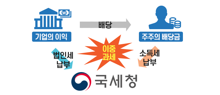 배당소득은 기업이 지급하기 전에 기업의 이익에 대한 법인세가 과세된 후 주주들에게 배당으로 지급되면서 소득세가 과세되기 때문에 하나의 소득에 대해 법인세와 소득세가 과세되는 이중과세 문제가 발생합니다.