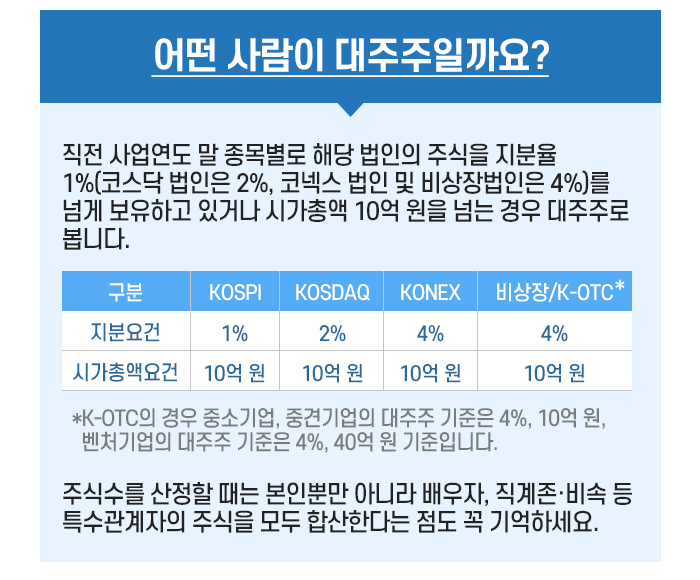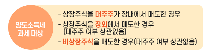 하지만 장외에서 주식을 양도하거나 소액주주가 아닌 대주주가 주식을 양도할 때는 양도소득세를 내야 합니다.
