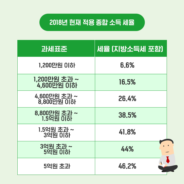 금융소득을 모두 더해 연간 2,000만원이 넘는 경우에는 다른 종합소득과 합산해 누진세율(6.6%~46.2%, 지방소득세 포함)을 적용하는 것을 ‘금융소득 종합과세’라 합니다. 금융소득이 많을수록 세금을 많이 거두려는 것이 그 목적입니다.