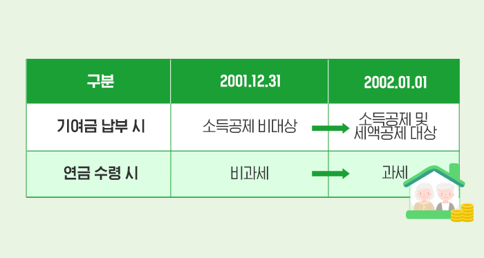 2002.1.1.을 기준으로 연금관련 과세체계가 바뀌었기 때문인데요, 연금소득은 2000년 말 소득세법 개정으로 인하여 2002년부터는 불입 및 운용단계에서는 비과세하고 연금을 받을 때 과세하는 방식으로 바뀌었습니다. 그러므로 2002년 이후 납입된 금액으로 받는 연금만이 과세되는 연금소득이 됩니다. 이러한 과세대상 금액은 해당 연금을 지급하는 공단에서 확인이 가능하므로 총수령액 중 실제로 과세되는 연금소득은 얼마인지를 먼저 확인하는 것이 절세전략을 세우는 기초가 될 것입니다.