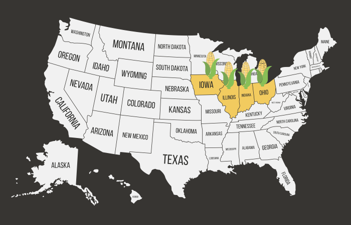 옥수수는 미국이 생산량, 수출량 모두 1위입니다. 아이오와주, 일리노이주 등 옥수수벨트라고 불리는 미국의 중서부 지역에서 미국 옥수수 생산량의 80%가 생산되고 있습니다. 보통 4~6월에 옥수수 씨를 뿌리고 9~11월에 수확을 하기 때문에 4~11월의 날씨가 옥수수 작황에 큰 영향을 줍니다.