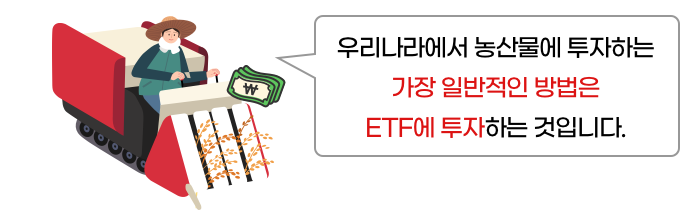 주 투자대상에서 알 수 있듯이 농산물에 투자하는 ETF는 모두 농산물 현물이나 농산물 관련 기업의 주식에 투자하는 것이 아니라 농산물 선물(Futures)에 주로 투자하고 있습니다.