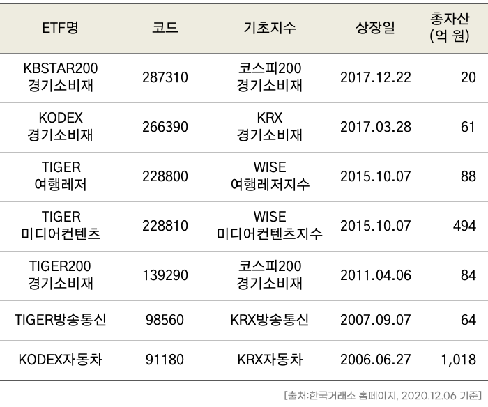 경기소비재 ETF는 7종이 상장되어 있죠.
