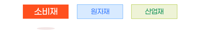 ‘소비재’란 소비자가 직접 구매하는 제품들을 말합니다. 원유, 석탄, 철광석과 같은 ‘원자재’, 물건을 생산하는 데에 필요한 기계, 장치를 뜻하는 ‘산업재’ 등과는 다른 개념이죠.