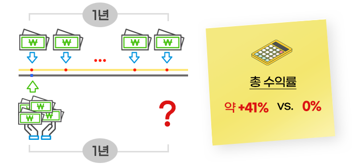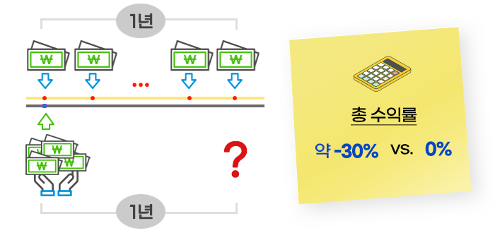 정액분할투자가 무엇인지 다음의 예시로 그 효과를 설명하면 가장 쉽게 알 수 있습니다.