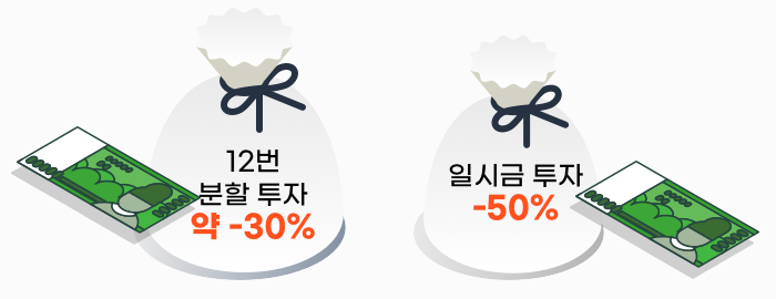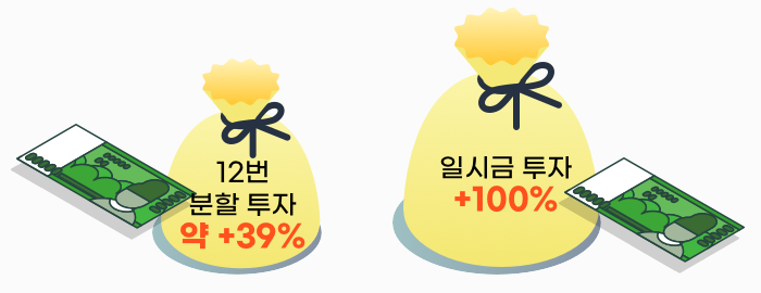 하지만, 한꺼번에 주식을 모두 매입했다면 +100%의 수익률을 가져갈 수 있었겠죠?