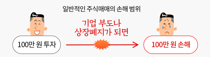 즉 A라는 종목을 10만 원씩 10주, 100만 원을 투자했는데 안타깝게도 투자한 기업이 부도가 나거나 상장폐지 된다면 투자한 100만 원의 손해만 발생합니다.