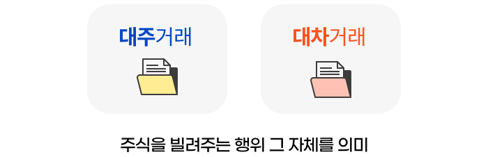 대주거래는 증권사를 통해 주식을 빌릴 때, 대차거래는 주식차입자와 대여자가 장외에서 별도 계약에 따라 주식을 주고받는 거래를 말합니다.