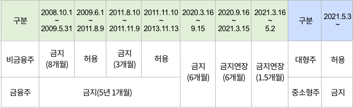 글로벌 금융위기 이후 공매도가 주식 시장의 변동성을 부추긴다는 이유로 각국 정부에서는 규제를 가하는 정책을 취해왔습니다.