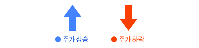 한국은 주가 상승이 빨간색, 하락이 파란색인데 반해 미국은 주가 상승이 파란색, 하락이 빨간색입니다.