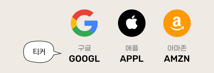 미국 주식에는 주식이름을 쉽게 표시한 약어인 티커(Ticker)가 있습니다. 국내주식은 종목코드를 숫자로 표기하지만 미국 주식은 알파벳 코드를 사용하고 있죠.